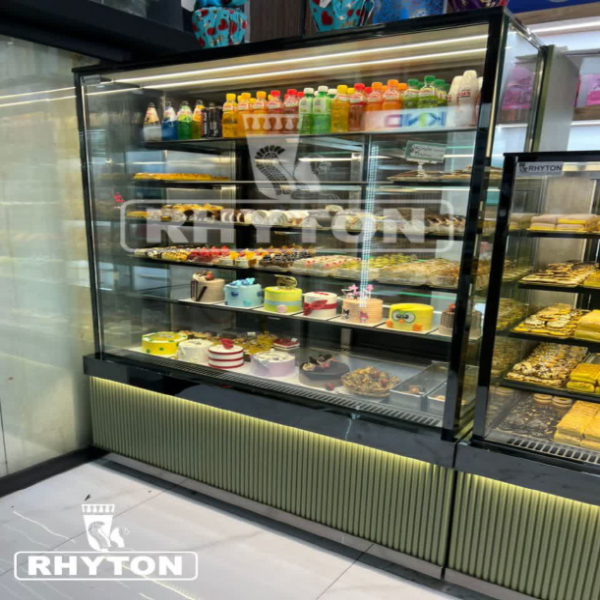 این یخچال با فرم مکعبی و شیشههای ضد بخار، جلوهای لوکس و مدرن به ویترین قنادی میبخشد. نورپردازی LED با زاویه دید کامل باعث میشود شیرینیها در بهترین حالت دیده شوند.